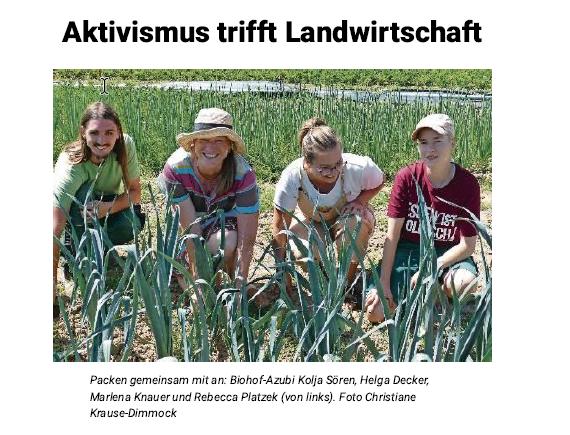 Wir freuen uns über die tolle Berichterstattung. Die Aktion "Aktivismus trifft Zukunft" hat in den Medien Gehör gefunden und wir konnten mit unseren Forderungen ein Zeichen setzen. Den internen Bericht von Deckers Biohof und die Forderungen an die Politik finden Sie auf unserem Blog: Neuigkeiten.