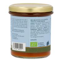Gemüsebrühe* (Wasser, Gemüse* (Lauch*, Tomaten*, Karotten*, Champignons*, Zwiebeln*, Steinsalz, Pfeffer*, Petersilie*, Thymian*, Lorbeer*, Koriander*), Tomatenmark*, SOJASAUCE* (Wasser, SOJABOHNEN*, WEIZEN*, Meersalz), Zuckerrübensirup*, Rapsöl*, SENF* (Wasser, SENFSAATEN*, Branntweinessig*, Meersalz, Gewürze*, Kräuter*), Steinsalz, Verdickungsmittel: Guarkernmehl*; Maisstärke*, Rosmarin*, Pfeffer*.| Energie | Fett | gesättigte Fettsäuren | Kohlenhydrate | Zucker | Eiweiss | Salz |