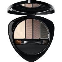 Gewünschte Farbkombination mit abgerundeter Seite des Pinsels auf das Augenlid auftragen. Augenbrauen mit der abgeschrägten Seite in passender Farbe mit kleinen feinen Strichen in