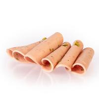 Puten-/ Hähnchenfleisch* (81%), PISTAZIRN* (2,5%), Trinkwasser, Meersalz, Gewürze (Zwiebel, Liebstöckel, Brennnesselblätter, Majoran, Pfeffer, Macisblüte, Muskatnuss, Koriander, Tomatenpulver)*, Vollrohrzucker*, Rote-Beete-Saft* (färbendes Lebensmittel), Stabilisator: Natriumcitrat| Energie | Fett | gesättigte Fettsäuren | Kohlenhydrate | Zucker | Eiweiss | Salz |