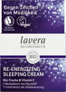 Erlebe das lavera Gefühl natürlich schöner Haut über Nacht: Während wir schlafen, arbeiten unsere Hautzellen auf Hochtouren, um die Spuren des Tages zu reparieren. Unsere Re-Energizing Sleeping Cream mit Bio-Traube und natürlichem Vitamin E revitalisiert das Hautbild und unterstützt die natürliche Zellerneuerung in der Nacht. Spüre wie die seidige Textur mit erlesenen Power-Wirkstoffen deiner Haut intensive Feuchtigkeit spendet - für eine frische und strahlend schöne Haut am Morgen.Die innovative Pflegeformel für müde Haut:- Revitalisiert und glättet das Hautbild- Bekämpft Zeichen von Müdigkeit- Für eine frische Haut am Morgen Das gute Gefühl von 100 % zertifizierter Naturkosmetik - ohne Kompromisse.Bio-Trauben sind dafür bekannt wertvolle Antioxidantien zu enthalten.Natürliches Vitamin E kann zur Regeneration der Hautzellen beitragen.Unser Versprechen:- Biologisch abbaubare Rezeptur ohne Mineralöle und ohne künstliche Duft-, Farb- und Konservierungsstoffe1- Zertifiziert nach dem strengen, unabhängigen NATRUE Naturkosmetikstandard. Verträglichkeit dermatologisch bestätigt- Tiegel (exkl. Verschluss) besteht aus mindestens 30 % Altglas & das Kartonmaterial dieser Faltschachtel ist aus 100 % Recyclingfasern (ohne Farbe & Additive)- Nach PETA-Kriterien zertifiziert und für das Tierwohl engagiert- Exklusive Naturkomposition aus der lavera-Forschung, mit dem Besten aus der Natur1 gem. EU-Kosmetik VO