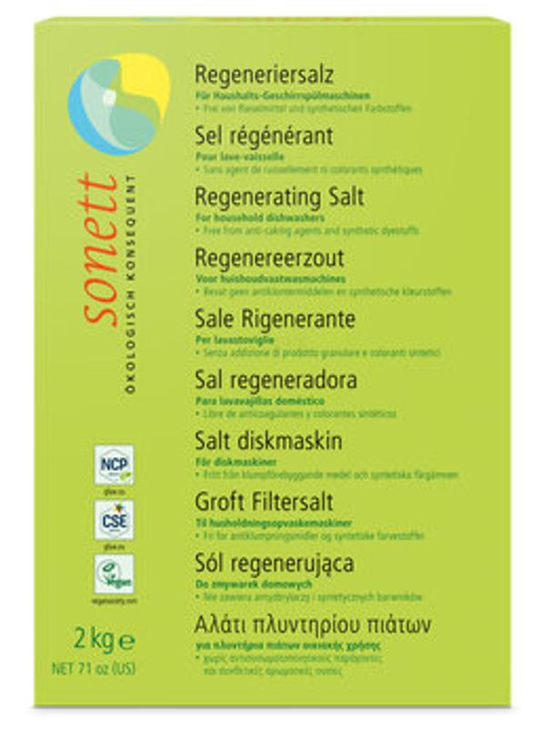 In jeder Geschirrspülmaschine ist ein Ionenaustauscher fest eingebaut, der die Härteionen des Wassers, Calcium und Magnesium abfängt und weiches Wasser in die Spülmaschine leitet. Hierdurch soll verhindert werden, dass auf Gläsern und Besteck Kalkränder auftreten. Ist der Ionenaustauscher mit Calcium- und Magnesiumionen gesättigt, muss die Aufnahmekapazität durch Regenerieren wieder neu hergestellt werden. Hierzu wird Regeneriersalz verwendet, das den Austausch der Härteionen bewirkt und so für ein optimales Spülergebnis sorgt. Dosierung: Sobald die Anzeige für Salzbedarf in der Spülmaschine au?euchtet, den dafür vorgesehenen Salzbehälter mit Regeneriersalz befüllen, entspr. der Gebrauchsanleitung des Maschinenherstellers. Erfahrungsgemäß gibt es Maschinen, die den Salzbedarf sehr spät anzeigen. Um diesem vorzubeugen, sollte Regeneriersalz regelmäßig nachgefüllt werden, auch wenn die Anzeige sich noch nicht meldet. War der Salzbehälter völlig leer, sollten Sie nach dem Wiederbefüllen ca. 2 Stunden warten, bevor die Maschine wieder in Betrieb genommen wird, damit der Ionenaustauscher genügend Zeit zum Regenerieren hat. Die Enthärtungsanlage der Spülmaschine einen Härtebereich 8°-10°dH/ 15°-18°fH höher einstellen als die tatsächliche Wasserhärte ist. Die Durchführung entnehmen Sie bitte der Gebrauchsanleitung Ihrer Spülmaschine (s.Infoblatt "Geschirrspülmaschine" www.sonett.eu). Die Kammern für Regeneriersalz und Klarspüler sollten stets gefüllt sein.