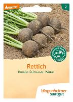 Kugelrunder, schwarzer, fester Winterrettich mit kräftigem Aroma und mit einer guten Schärfe. Runder schwarzer Winter ist unter optimalen Bedingungen bis März/April lagerfähig. Achten Sie