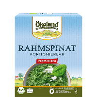 Spinat*, 12% SAHNE*, Wasser, Sonnenblumenöl*, Stärke* (Reis*, Kartoffel*), Meersalz, Verdickungsmittel: Guarkernmehl*; Dextrose*, Gewürze* (Zwiebeln*, Muskat*, Pfeffer*).| Energie | Fett | gesättigte Fettsäuren | Kohlenhydrate | Zucker | Ballaststoffe | Eiweiss | Salz |