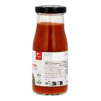 Paprika* rot, Meerrettich*, Agavendicksaft*, Wasser, Knoblauch*, Chili* rot, Branntweinessig*, Meersalz, Zwiebeln*, Koriander*, geschroteter Pfeffer* schwarz, Kümmel*, Verdickungsmittel: Guarkernmehl*| Energie | Fett | gesättigte Fettsäuren | Kohlenhydrate | Zucker | Eiweiss | Salz |