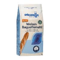 Feines Spezialmehl aus Weizen mit hohem Klebergehalt und optimaler Wasseraufnahme - entwickelt für französische Baguettes und lange Teigführungen. Sorgt für knusprige Krusten, luftige Krume und intensives Aroma. Ideal für Baguette, Pain Paillasse, Ciabatta oder rustikale Weißbrote.Grundrezept: Baguettes Tradition Française Zutaten für 3 Baguettes: 500 g Baguettemehl, 12 g Salz, 1/2 Würfel Hefe, ca. 340 ml handwarmes Wasser, 1 Baguetteblech für 3 Baguettes         Zubereitung: (1) Die Hefe im handwarmen Wasser zusammen mit 2 EL Baguettemehl auflösen und 15-30 Minuten stehen lassen bis sich Bläschen zeigen. (2) Das Mehl mit Salz mischen, das Hefewasser zugeben und so lange kneten bis ein glatter, zäher Teig entstanden ist. (3) Mit einem feuchten Geschirrtuch bedeckt 2 Stunden in der Schüssel gehen lassen. Er sollte dann doppelt so groß sein. Falls nicht, länger gehen lassen. (4) Den Teig auf die leicht bemehlte Arbeitsfläche geben, auseinanderziehen und die 4 Ecken wie einen Brief übereinander falten. Der Teig bleibt weiterhin etwas klebrig. 20 Minuten gehen lassen. Das Ganze noch 2 Mal wiederholen. (5) Zuletzt drei Baguette rollen und bemehlt in der Baguetteform nochmals 30 Minuten gehen lassen. (6) Den Backofen auf 250 °C Ober-/Unterhitze vorheizen. Mit einem sehr scharfen Messer einige schräge Schnitt in den Teig machen. Das Blech auf der mittleren Schiene einschieben und 15 Minuten backen. Das heiße Baguett nach dem Backen mit etwas Wasser bestreichen um eine glänzende Kruste zu erreichen.            Tipp: wer möchte, kann den Teig auch über Nacht bei Raumtemperatur gehen lassen und am nächsten Tag ab Schritt 4 weiterarbeiten. Dann kann die Hälfte der Hefe verwendet werden.